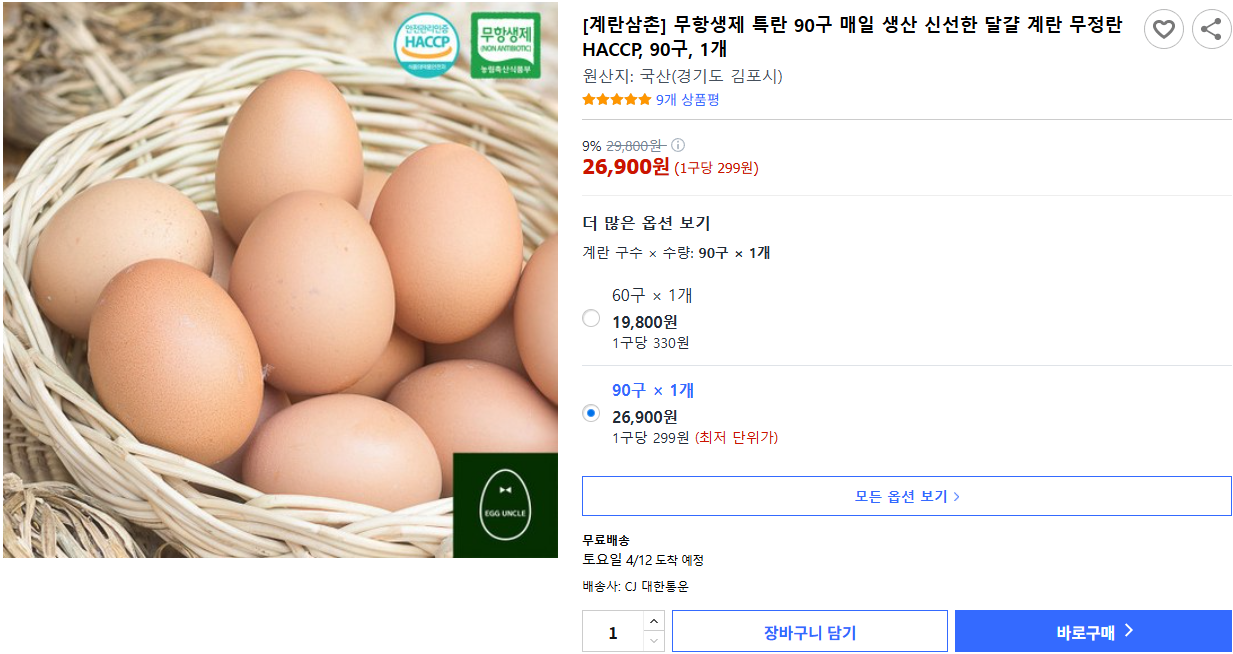 HACCP 인증, 무정란만 엄선, 90구 대용량 구성까지.