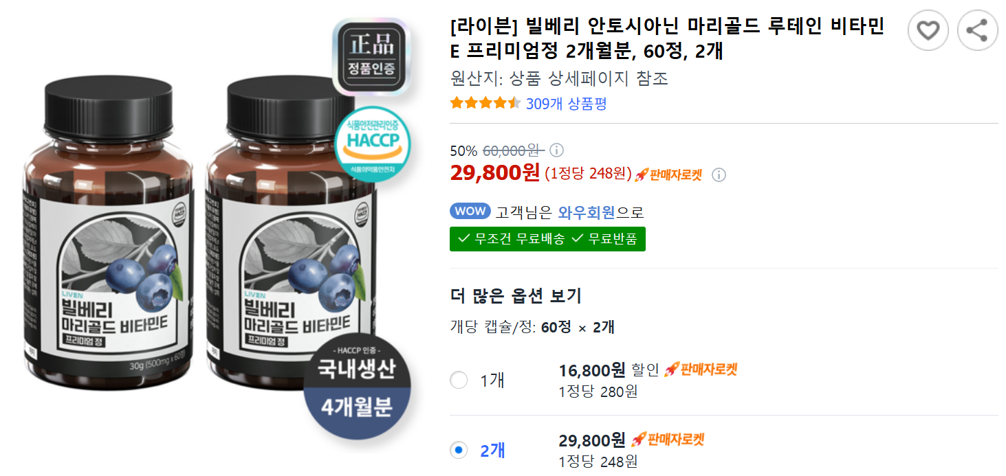 현재 별점 4.7점, 리뷰 309개를 가진 [라이븐] 빌베리 안토시아닌 마리골드 루테인 비타민E 프리미엄정 2개월분, 60정, 1개! 지금 쿠팡에서 더 저렴하고 다양한 빌베리 제품들을 확인해보세요.