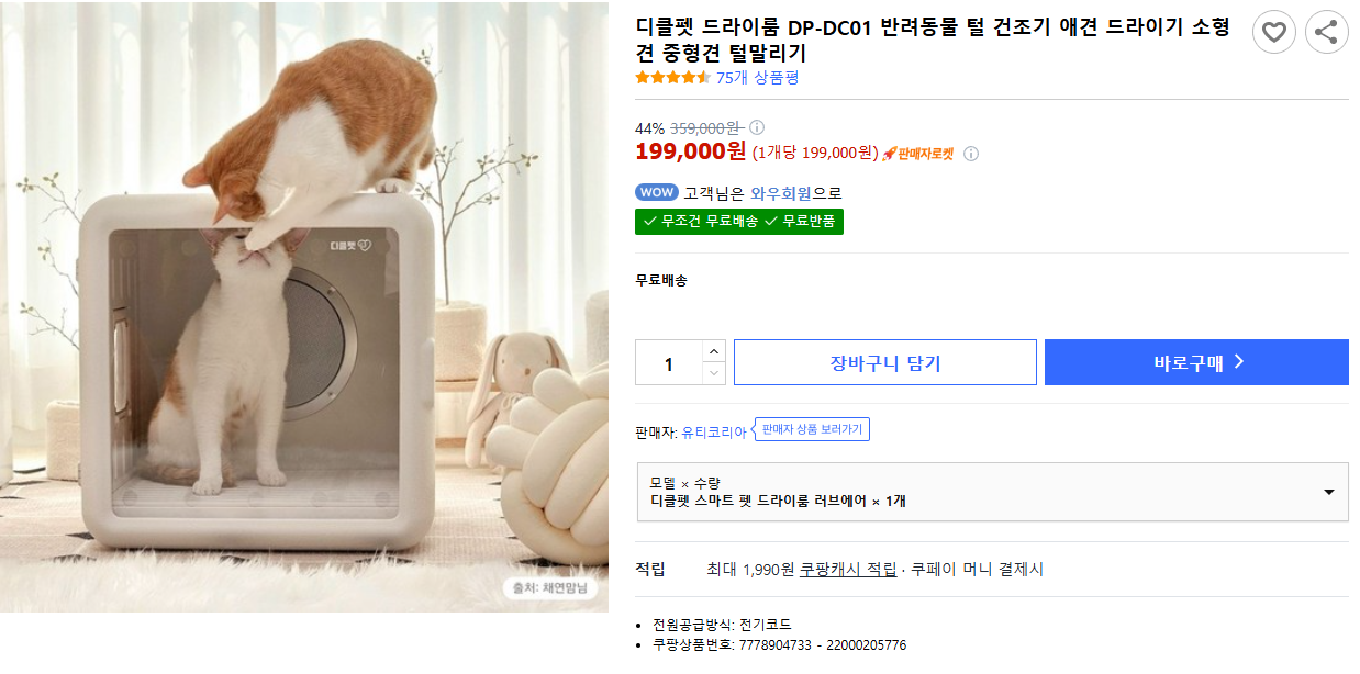 쿠팡에서 디클펫 드라이룸 DP-DC01 반려동물 털 건조기 애견 드라이기 소형견 중형견 털말리기 구매하고 더 많은 혜택을 받으세요! 지금 할인중인 다른 드라이기/드라이룸 제품도 바로 쿠팡에서