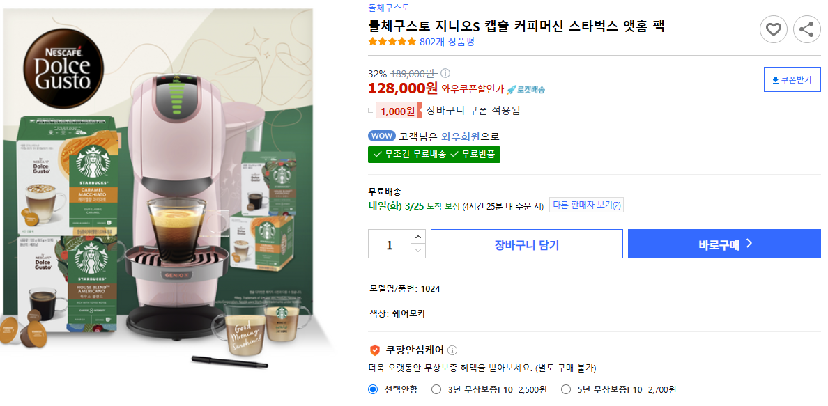 ‘돌체구스토 지니오S 캡슐 커피머신 + 스타벅스 앳홈 팩’이라는 이름부터 솔깃하죠.