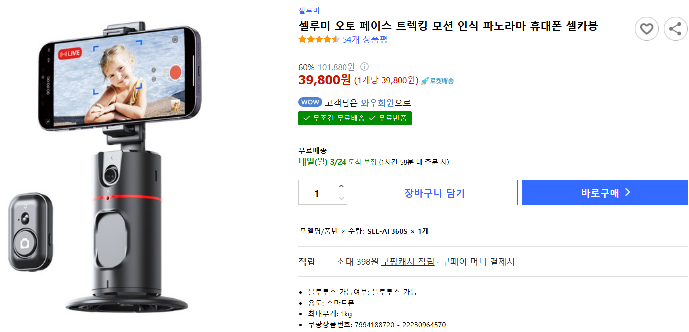 그럴 때 필요한 게 바로 자동으로 얼굴을 인식하고 따라가는 셀카봉이더라고요!