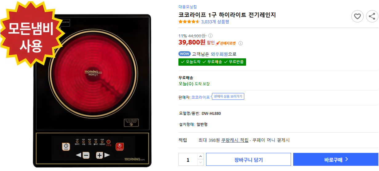 현재 별점 4.5점, 리뷰 3033개를 가진 코코라이프 1구 하이라이트 전기레인지! 지금 쿠팡에서 더 저렴하고 다양한 하이라이트 제품들을 확인해보세요.
