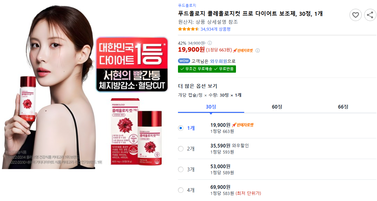 현재 별점 4.4점, 리뷰 34934개를 가진 푸드올로지 콜레올로지컷 프로 다이어트 보조제, 30정, 1개! 지금 쿠팡에서 더 저렴하고 다양한 기타다이어트식품 제품들을 확인해보세요.