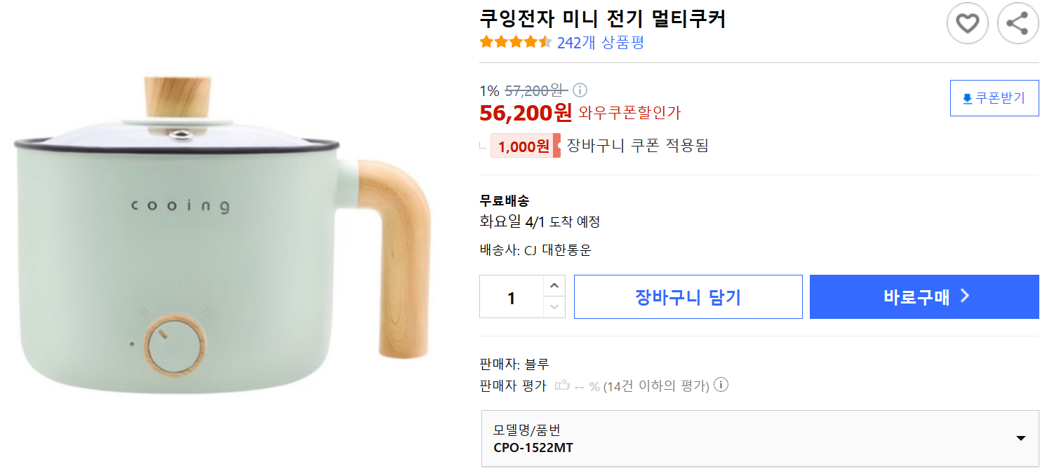 그러다 알게 된 쿠잉전자 미니 전기 멀티쿠커.